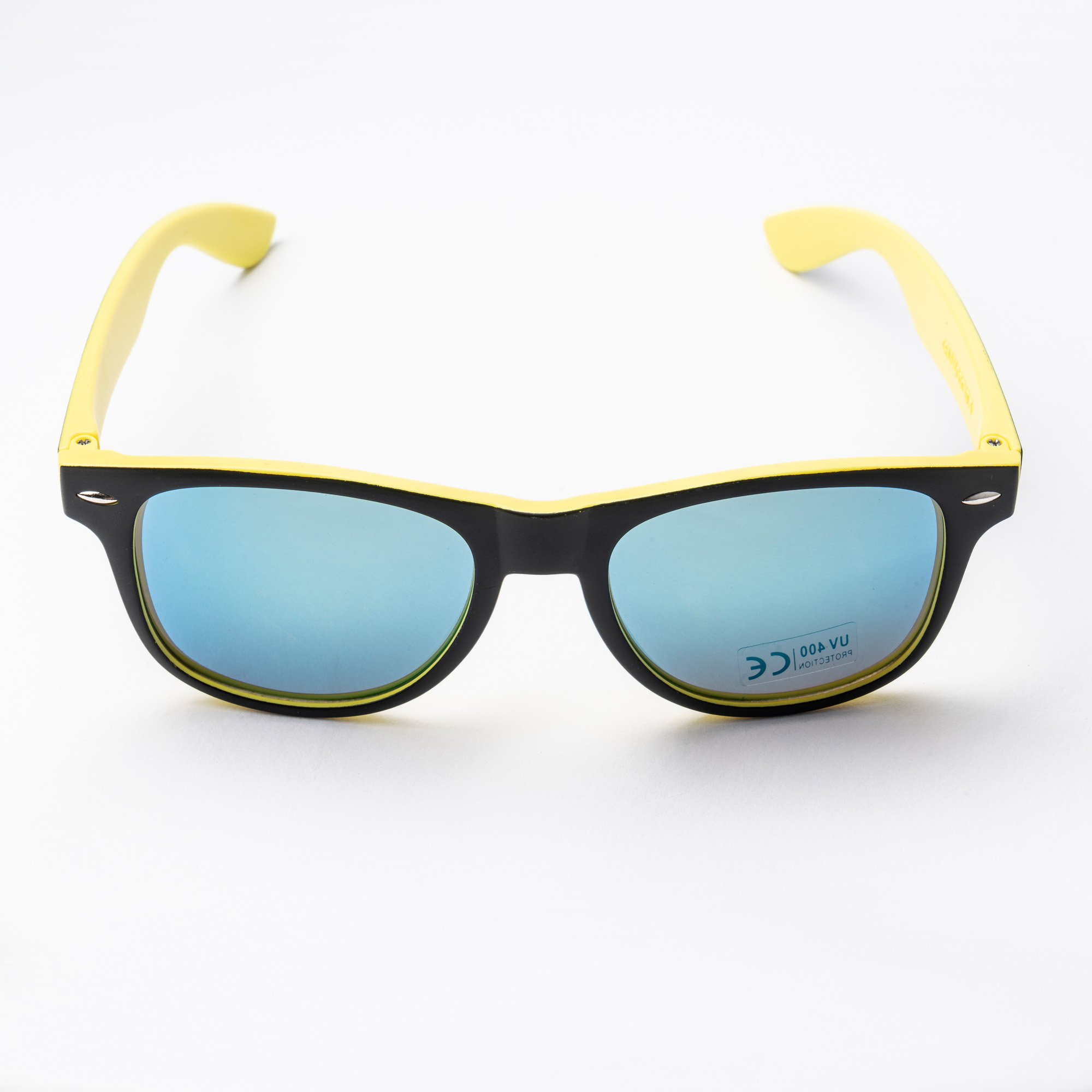Žluté sluneční brýle s logem Únětického pivovaru.
