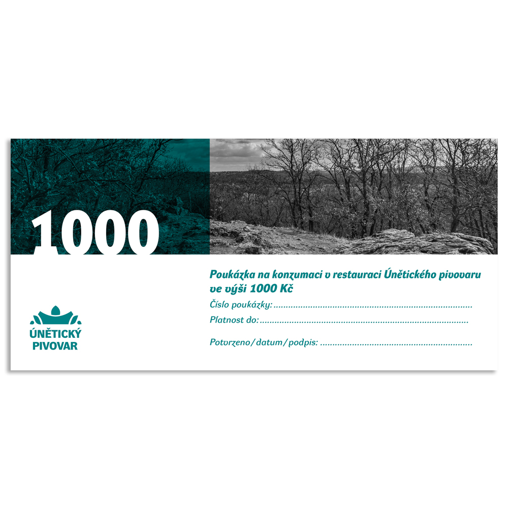 Poukázka na konzumaci v restauraci Únětického pivovaru v hodnotě 1000 Kč.